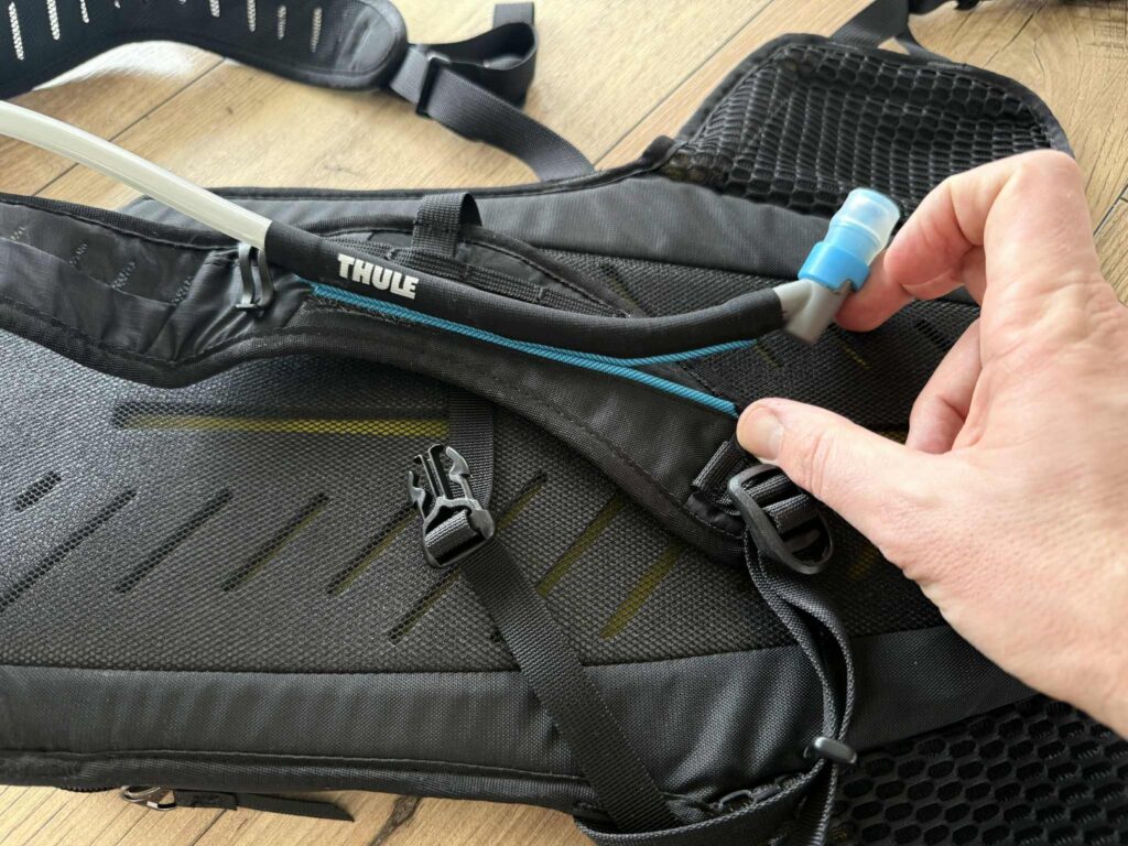 Waar de Thule Vital 6L echter in uitblinkt, dat is de langwerpige magnetische houder die de waterslang van het Hydrapak als vanzelf aantrekt wanneer je ze na het drinken gewoon laat bengelen. Ook handig: het kleine zakje bovenaan de rugzak heeft een zachte voering, wat het dus veilig maakt om je smartphone of zonnebril in weg te stoppen.